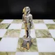 Поле шахмат выполнено из редкого и благородного оникса, сочетающего в себе оттенки белого и глубокого зеленого. Доска и фигуры, отлитые из бронзы, вручную расписаны серебром и золотом, придавая им неповторимый блеск и роскошь. Каждый элемент выполнен с исключительным вниманием к деталям, что делает эти шахматы настоящим шедевром.